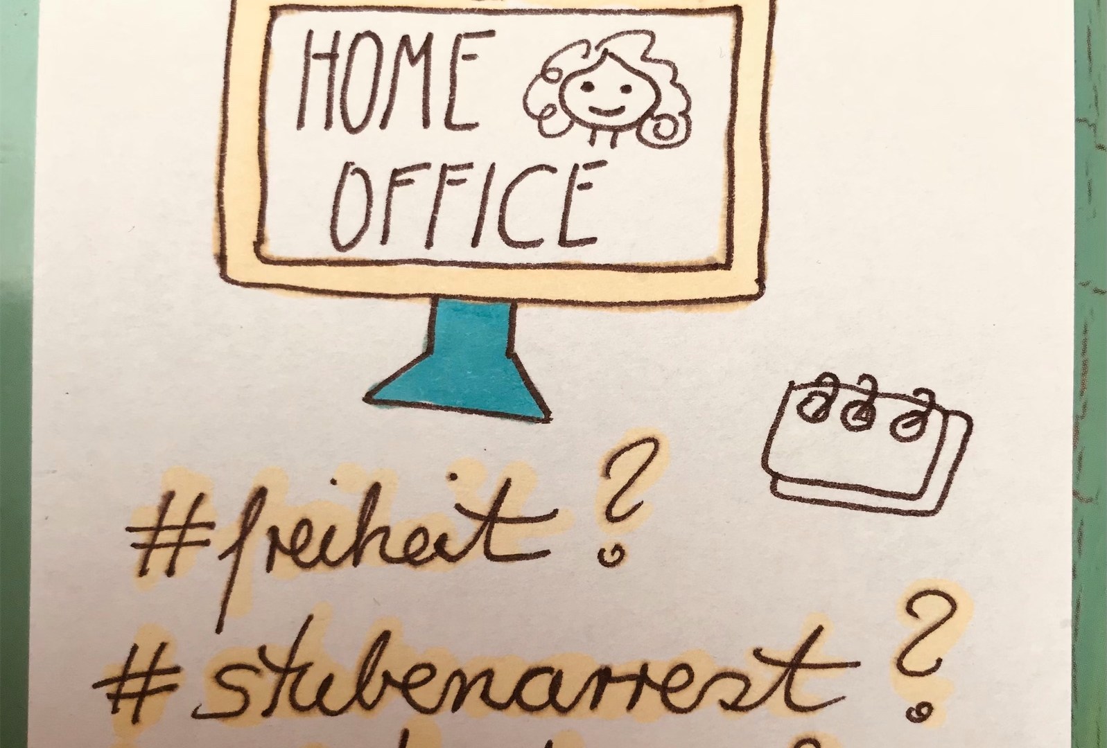 Vor einem Jahr am 17. März stand für mich und einen Teil meiner Kollegen fest: Team B geht ins Home Office, um genau zu sein: Mobiles Arbeiten ab sofort. Es gibt einen Unterschied zwischen den Begrifflichkeiten „Home Office“ und „Mobiles Arbeiten“, aber dazu später mehr. Alles nach der Reihe. Team A blieb präsent im Büro. Ich hatte also ein „B“ ergattert, um 16 Uhr meinen Rechner runtergefahren, meinen Schreibtisch aufgeräumt, den Trolley abgeschlossen und der Welt, wie ich sie immer seit 51 Jahren bei mir getragen hatte, Adieu gesagt. Als ich draußen vor dem Gebäude stand, fiel etwas ab: Die Schwere, die aus täglichem Seufzen und Atemübungen bestand, eine Art Überlebensstrategie. Jeder Kollege hatte bis dahin seine eigene Strategie, meine war aus mehreren Bauteilen zusammengesetzt: Musik auf die Ohren und Humor als Gegenmaßnahme gegen Maßnahmen, die für einen selbst ein Mysterium blieben